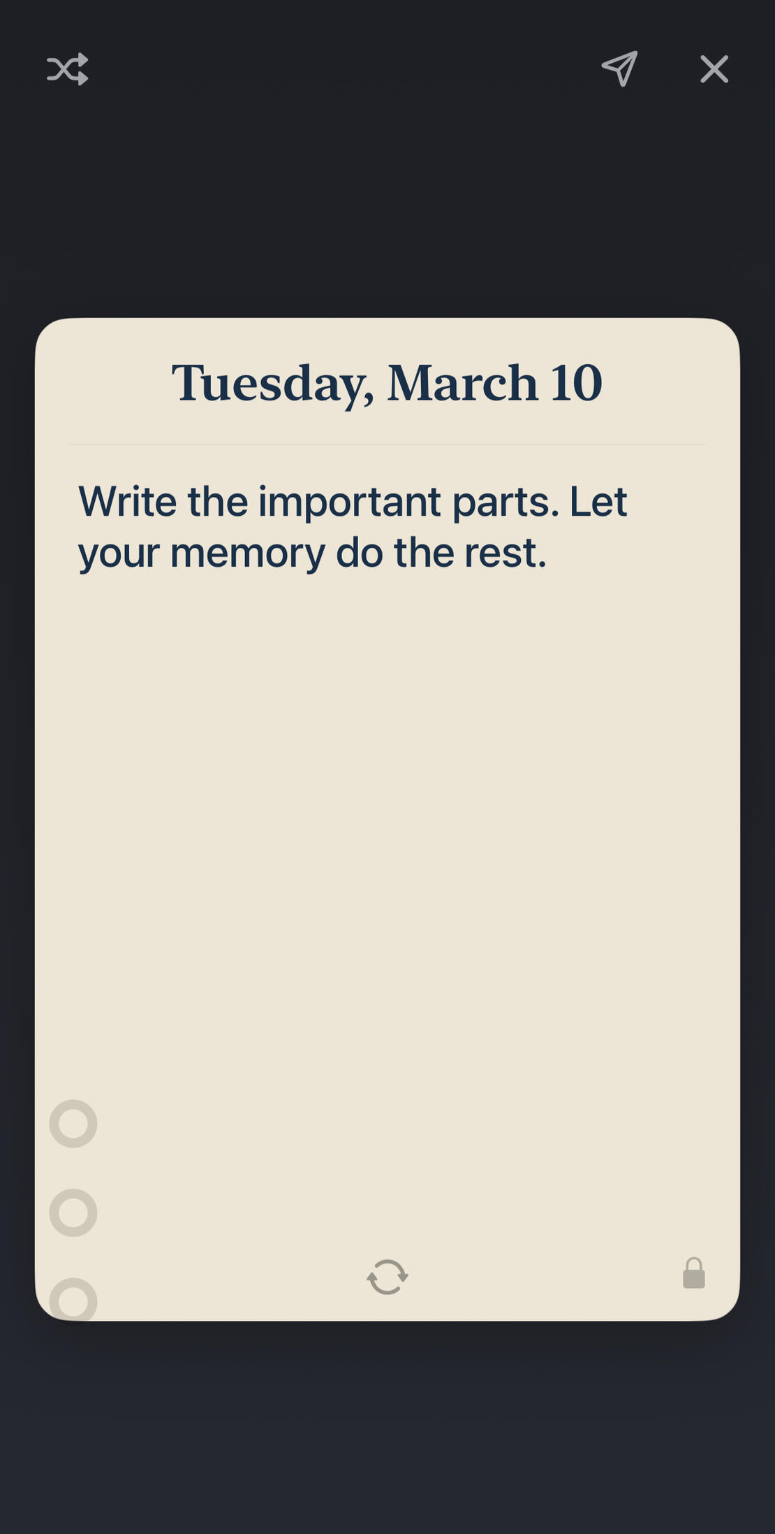 Write just 50 words a day and slowly build a record of the moments that make up your life. Small memories, ordinary days, and the details you would otherwise forget.